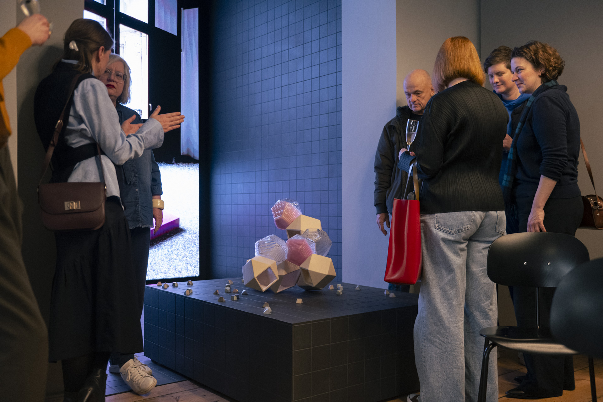 Im Anschluss an den Talk gab es die Möglichkeit, Kristiane Kegelmann in einem persönlichen Gespräch kennenzulernen, ebenso wie ihre Pralinen. Präsentiert wurden diese zusammen FREEZE AND CLAY, einer Skulptur von MuDD Architects, die erstmalig im Rahmen der Architekturbiennale 2023 im prächtigen Rahmen des Palazzo Bambolo in Venedig präsentiert wurde und zwei der ältesten Materialien, Keramik und Glas, in ihren Mittelpunkt rückt.