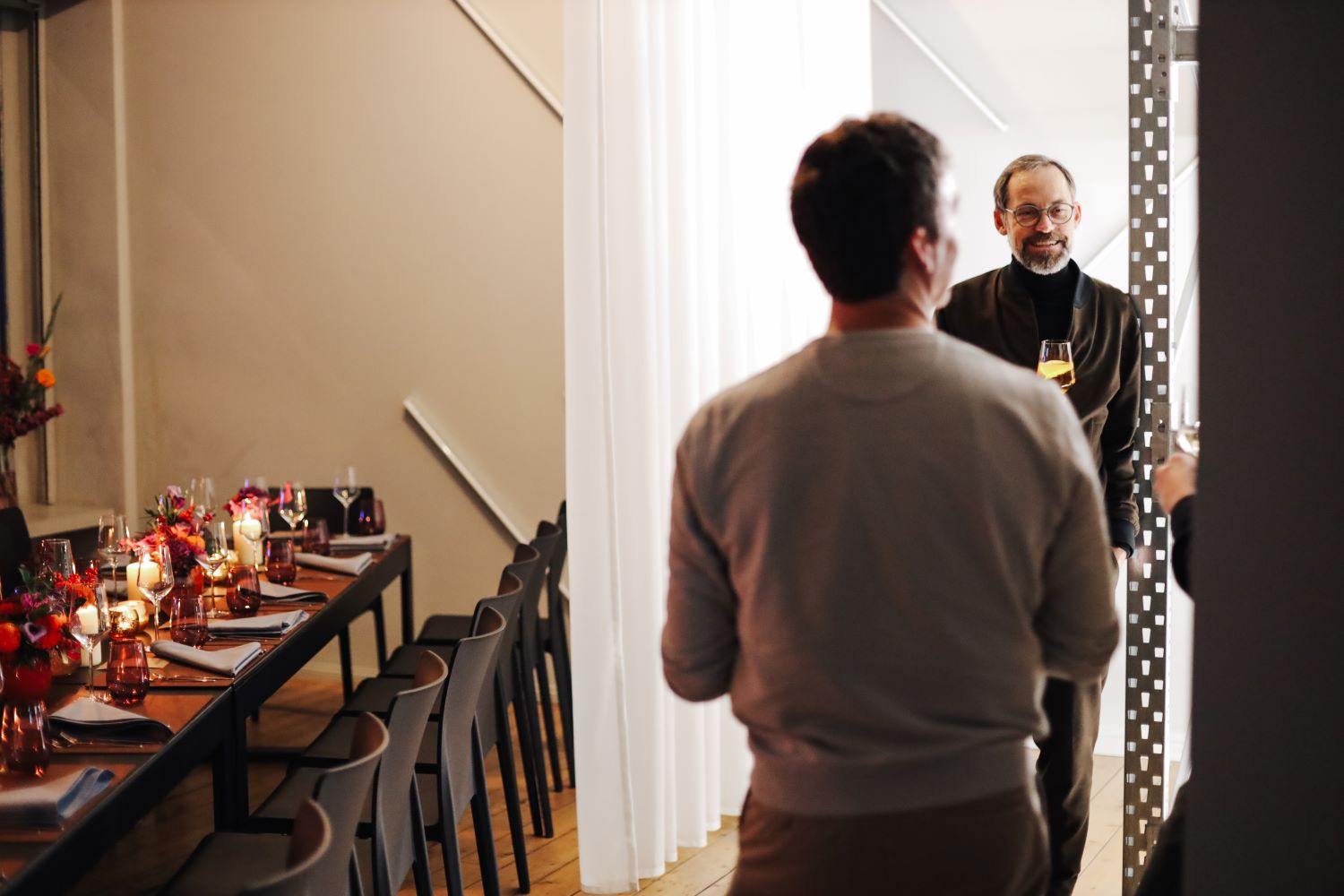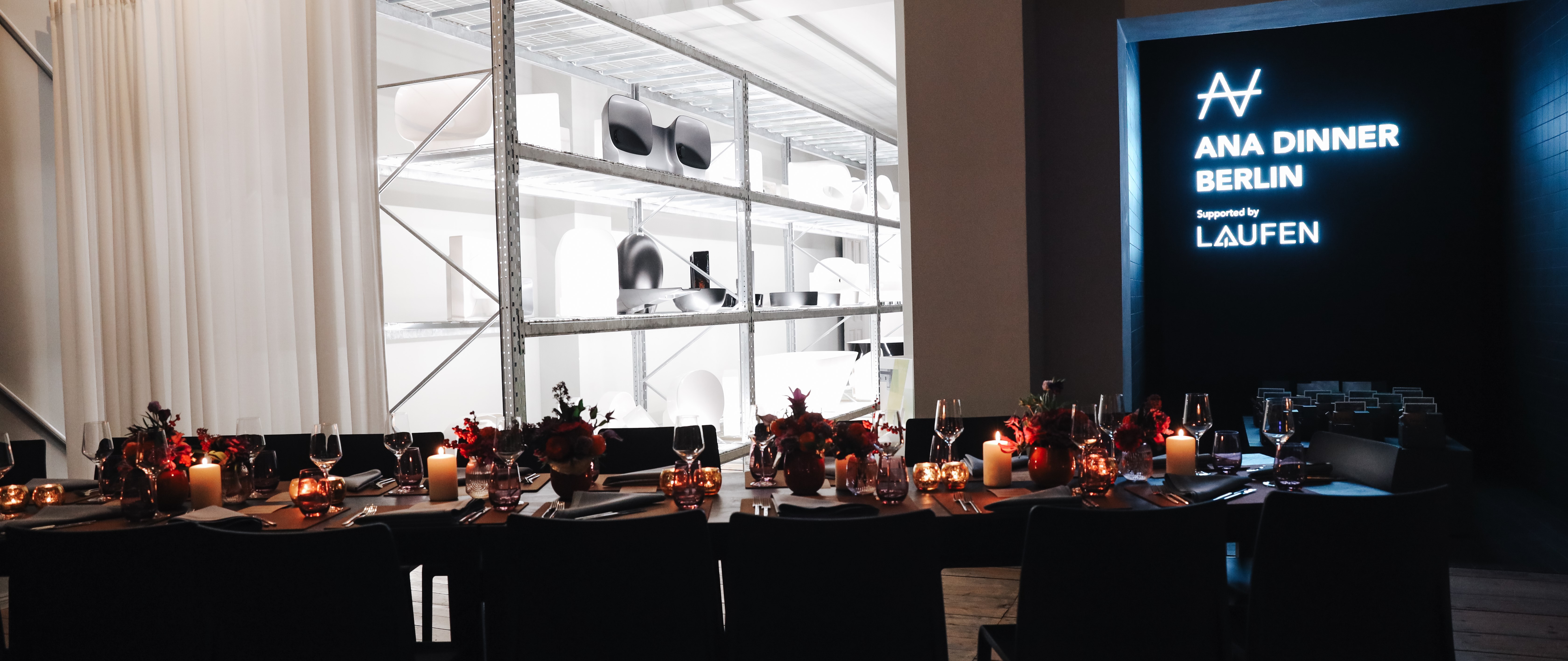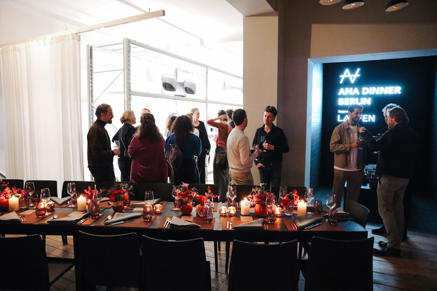 Das gesetzte Dinner fand an einem außergewöhnlichen Ort statt: direkt im Schaufenster des LAUFEN space Berlin. Bei warmem Kerzenlicht und umgeben von ikonischen LAUFEN Produkten entstand eine intime Atmosphäre, die den Raum in einen Ort des Austauschs und der Begegnung verwandelte. Die rund 20 Gäste genossen ein leckeres Menü. Nach jedem Gang rotierten die Sitzplätze, sodass alle die Möglichkeit hatten, mit möglichst vielen unterschiedlichen Menschen ins Gespräch zu kommen.