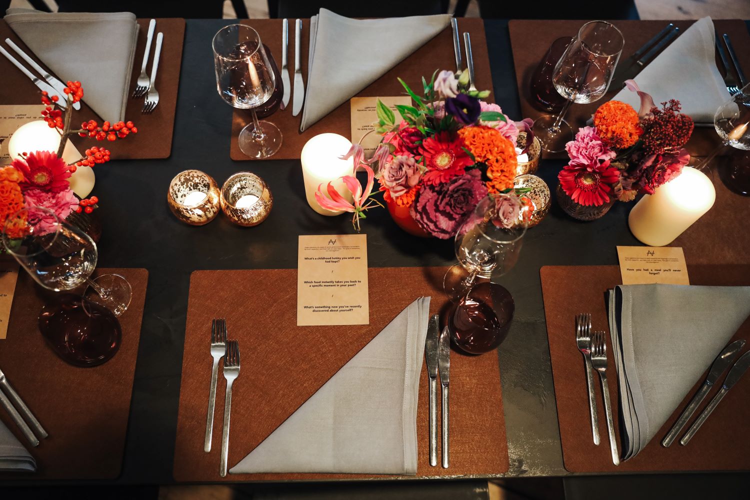 Als kleine Aufmerksamkeit lag an jedem Platz eine Karte mit inspirierenden Fragen bereit, die den Gästen half, spannende Gespräche mit ihren Tischnachbar:innen anzuregen.